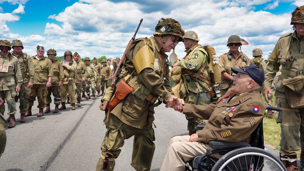 Midway through the day, I encountered Mary, a 103-year-old former “Rosie the Riveter.” Draped in her signature bandana, she shared memories of assembling aircraft in a Detroit factory. Her pride in her contributions to the war effort was palpable, and her story left a lasting impression on everyone around her. Meeting Mary was a vivid reminder that history isn’t just in books or reenactments—it lives in the people who experienced it firsthand.