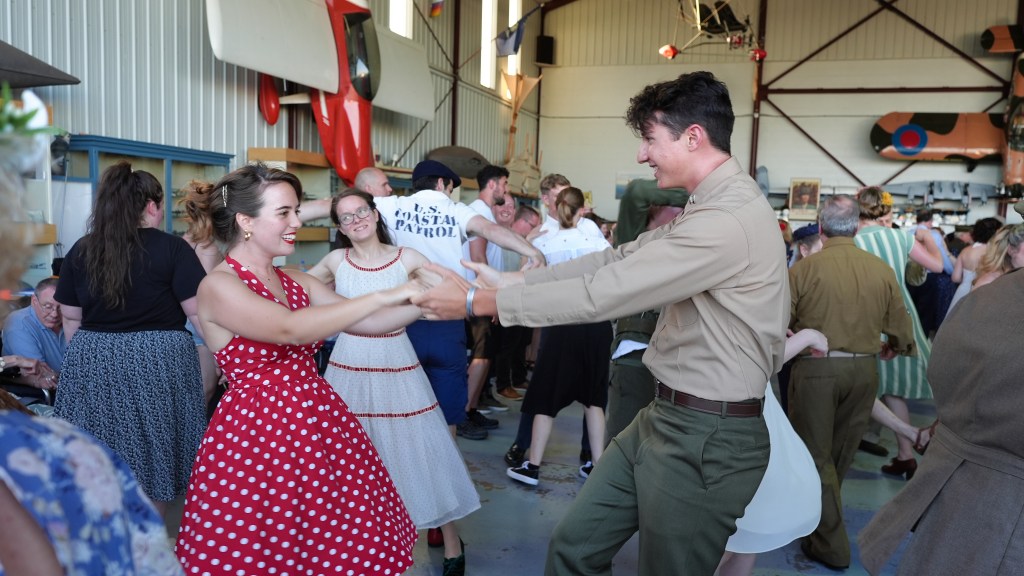 As the day transitioned into evening, the excitement shifted to the Airfield Museum for the much-anticipated 1940s-themed dance. Attendees dressed to the nines in vintage attire swayed to the rhythm of a live big band. The night pulsed with energy, laughter, and the timeless melodies of the swing era. Capturing the smiles and dance moves on film was a delight.