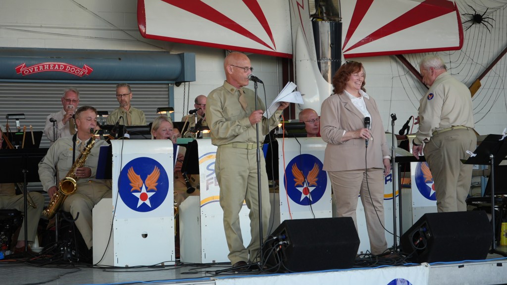 The second day began with somber reflections as visitors gathered for a memorial service honoring veterans and those who gave their lives during WWII. A flyover of restored warplanes served as a powerful tribute, with the engines’ roar echoing across the event grounds.