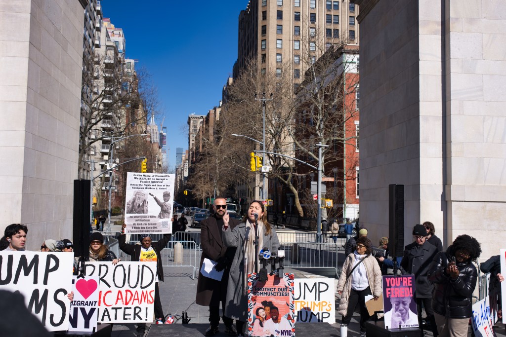 City Council Member Alexa Avilés was among the speakers at today’s rally, standing in solidarity with her community. She voiced deep concerns over Adams’ leadership, accusing him of betraying immigrant New Yorkers for political gain.