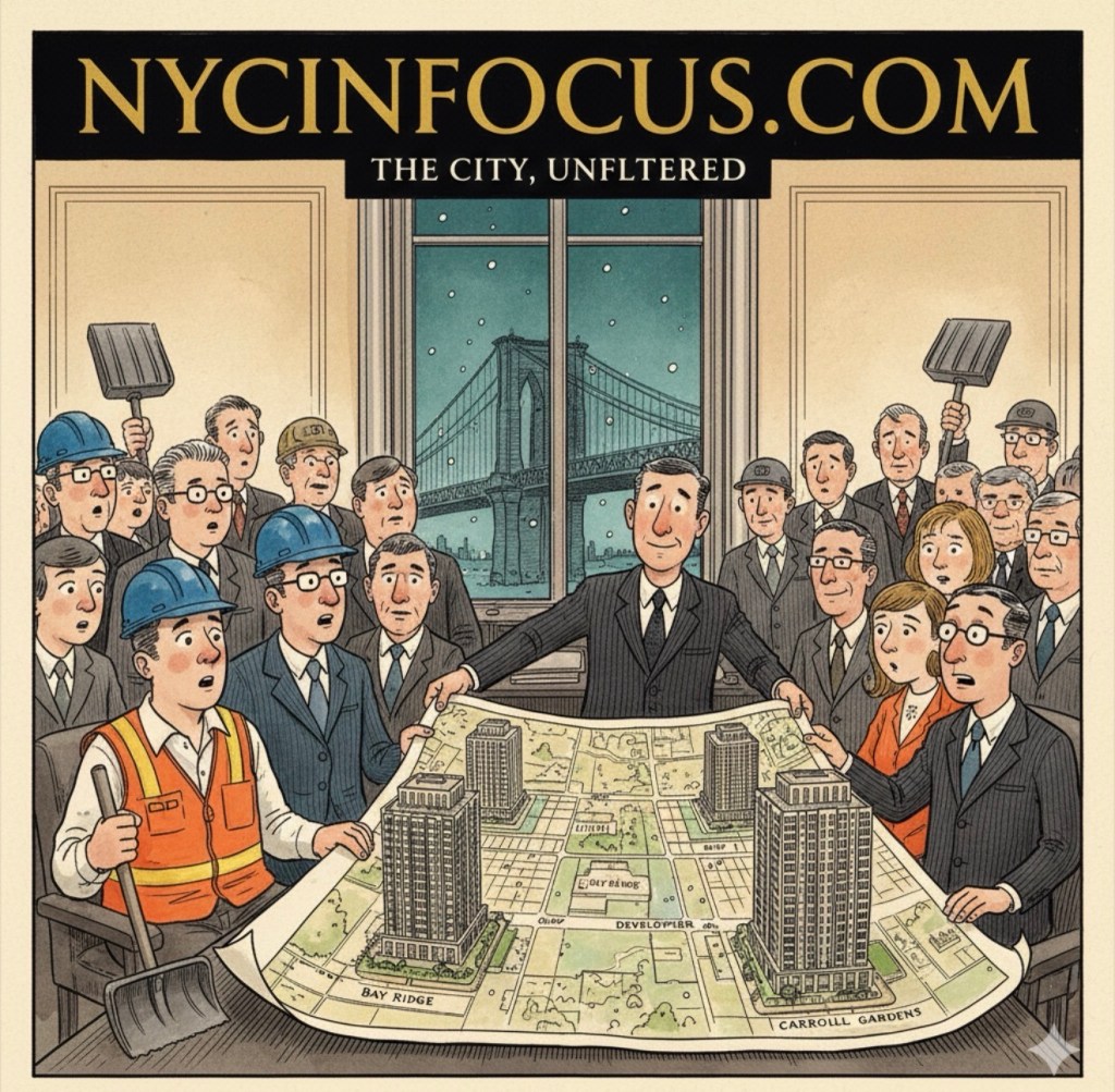 Documents reviewed by NYC In Focus show the City Council will vote on transformative zoning changes in Bay Ridge and Carroll Gardens next Monday, while the Department of Sanitation quietly added more than 80 workers in a single December day and the Department of Environmental Protection lost two six-figure engineers in January. All of it is happening during a compressed public comment window that closes before most New Yorkers finish their coffee next week.