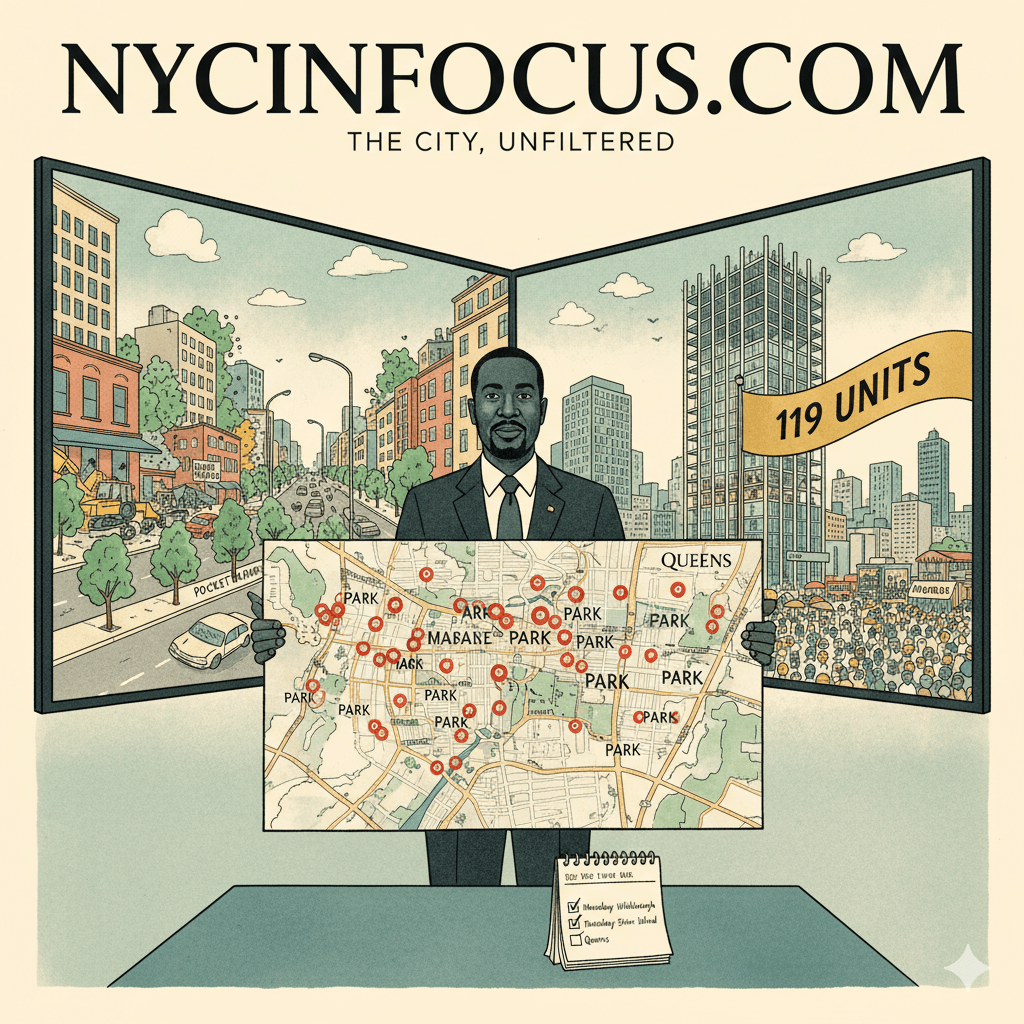 Documents reviewed by NYC In Focus show Queens Borough President Donovan Richards is holding a virtual public hearing at 9:30 a.m. TODAY, Thursday, April 16, 2026, on the largest parkland acquisition in western Queens in a decade and a 13-story Corona tower.